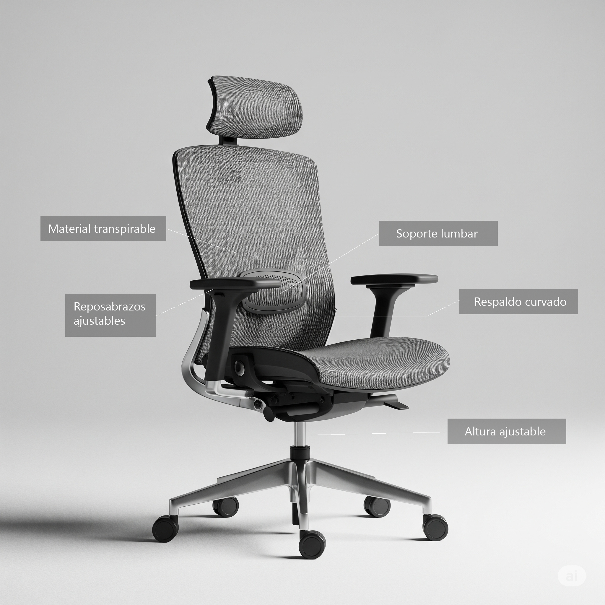- Altura ajustable y soporte lumbar: el asiento debe subirse o bajarse hasta que tus pies queden planos en el suelo, y el respaldo debe sostener correctamente la curva de tu espalda baja. Los reposabrazos también deben ser ajustables en altura o ancho para apoyar tus brazos sin encoger los hombros.