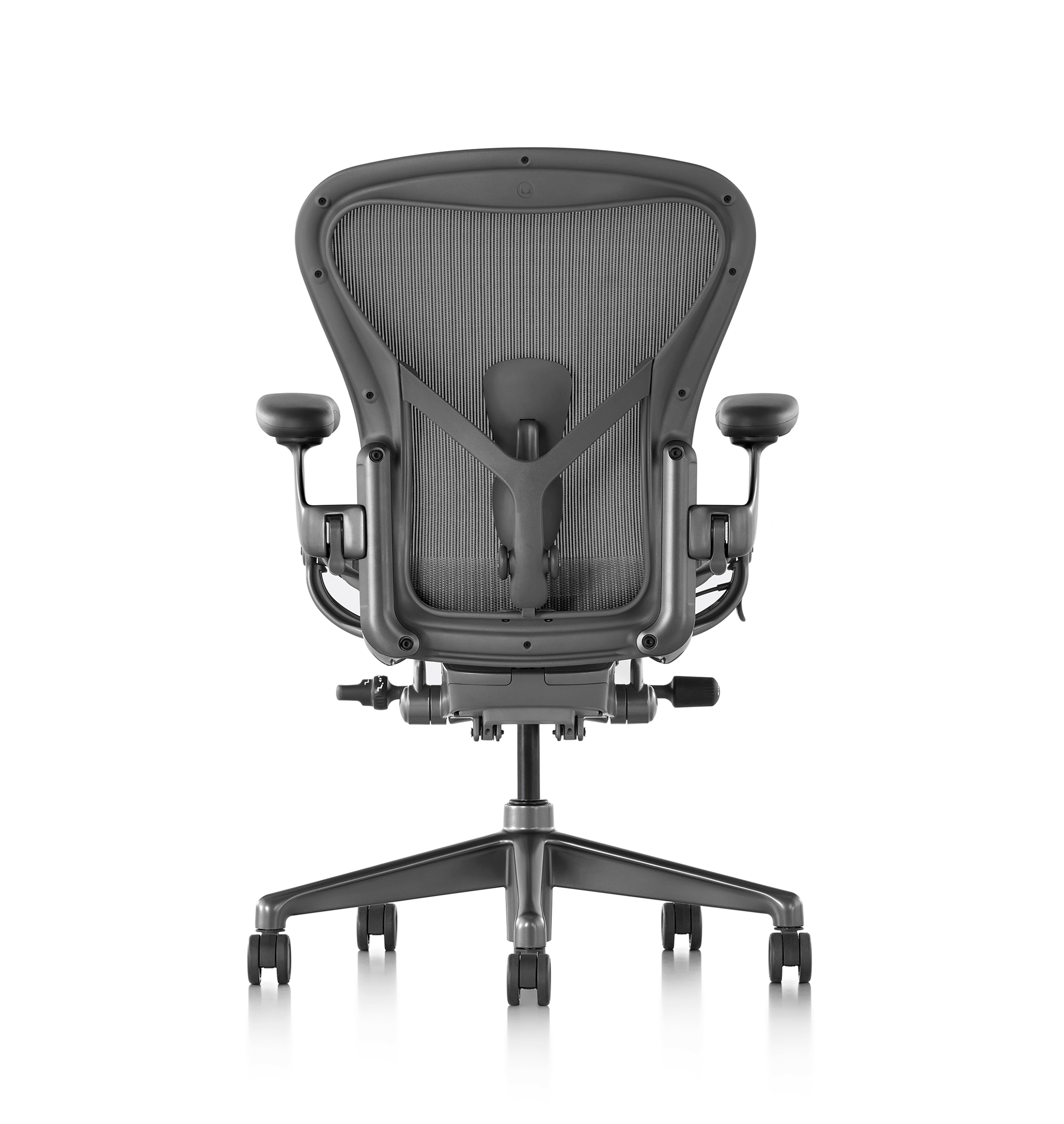 Icono clásico de oficina. Respaldo y asiento de malla Pellicle altamente transpirable. Viene en tres tallas (A, B, C) para distintos cuerpos, con apoyo lumbar ajustable (sistema PostureFit) y ajustes finos de reclinación y altura. Su durabilidad es legendaria.