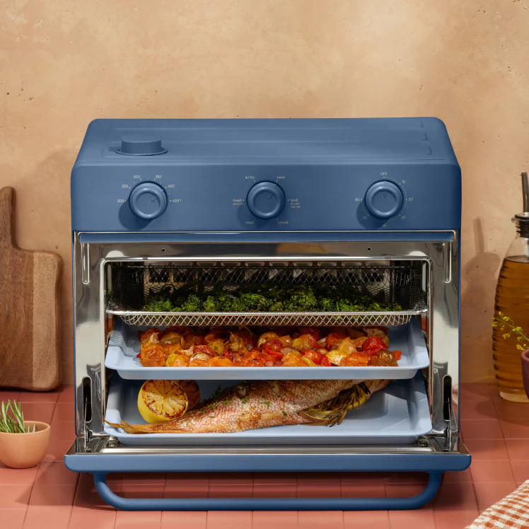 Este pequeño gigante es un horno que puede tostar, hornear, asar, freír al aire, recalentar y deshidratar alimentos. Suena a ciencia ficción, pero no: lo puedes tener en tu cocina. Es ideal para espacios pequeños y tiene controles analógicos que hacen que cocinar sea tan fácil como girar una perilla. Si te gusta la versatilidad, este gadget es una joya.