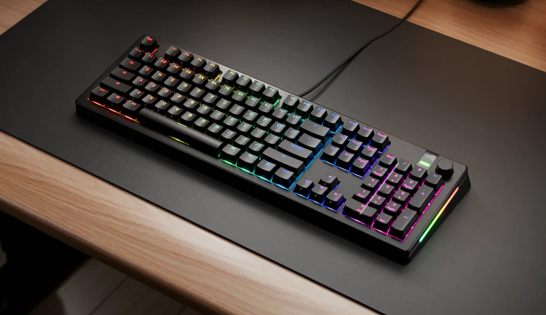 Basado en el chasis del K70 tradicional, es un teclado full-size con cuerpo de aluminio en la parte superior. Mantiene las queridas teclas multimedia dedicadas y la rueda de volumen característica de Corsair. Internamente han agregado materiales de insonorización (espuma en la barra espaciadora por ejemplo) para mejorar la acústica, aunque probablemente no alcance el nivel de un gasket mount, sí lo hace más silencioso que antiguos K70. En cuanto a desempeño, combina sus switches ajustables con el polling rate de 8000 Hz vía USB, asegurando una latencia bajísima. Viene con 8 MB de memoria interna para almacenar perfiles complejos directamente en el teclado. El precio de lanzamiento ronda los $230. Un punto llamativo es el modo de activación dual ya mencionado, configurable en iCUE, que pocos teclados ofrecen. Eso sí, a diferencia de algunos competidores, no tiene entradas analógicas puras (no es un joystick, simplemente registra dos niveles digitales). Corsair se enfocó más en la parte de velocidad y personalización de actuacion que en usar teclas como gatillos analógicos. El teclado ofrece NKRO completo, y al igual que otros K70 tiene un botón para bloquear tecla Windows y atajos para cambiar perfiles e iluminación sobre la marcha. Visualmente es muy similar a un K70 RGB normal – Corsair mantuvo una estética familiar, lo que puede ser positivo o negativo según si esperabas algo más novedoso.