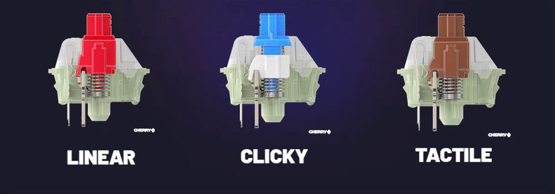 Los switches mecánicos son los interruptores debajo de cada tecla que determinan la sensación y el sonido al presionar. Existen tres tipos básicos: