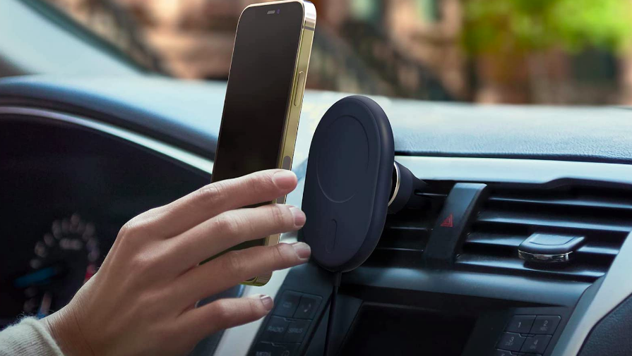 Uno de los cargadores MagSafe más útiles es el cargador de coche inalámbrico Totallee. Proporciona hasta 10 vatios para iPhone y 7,5 vatios para teléfonos Samsung. Mientras tanto, el cierre automático lo mantiene seguro en su cabina.