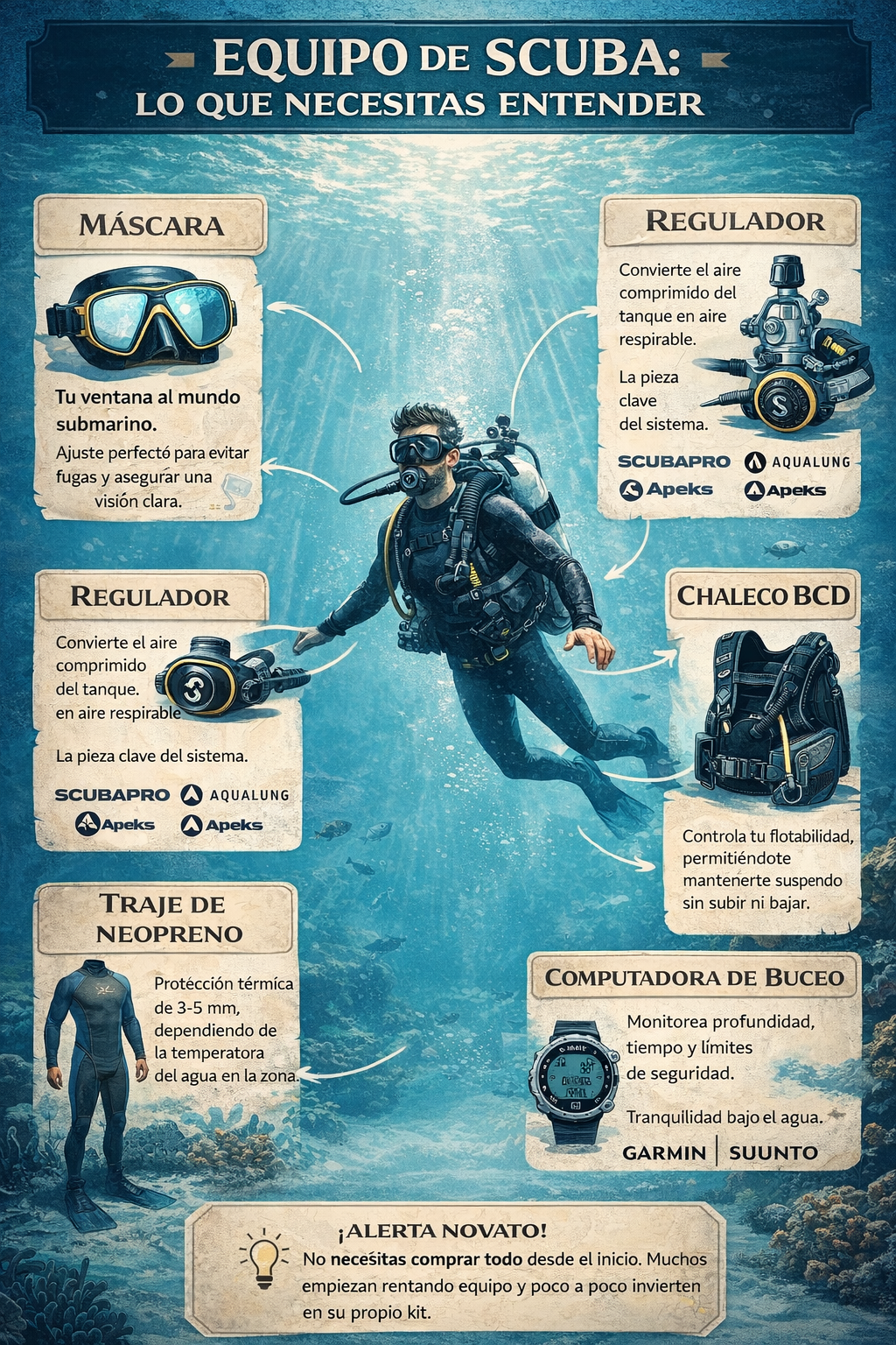 Sin embargo, el equipo bien cuidado dura muchos años. Y para quienes se enamoran del scuba, deja de sentirse como gasto y empieza a verse como inversión en experiencias.