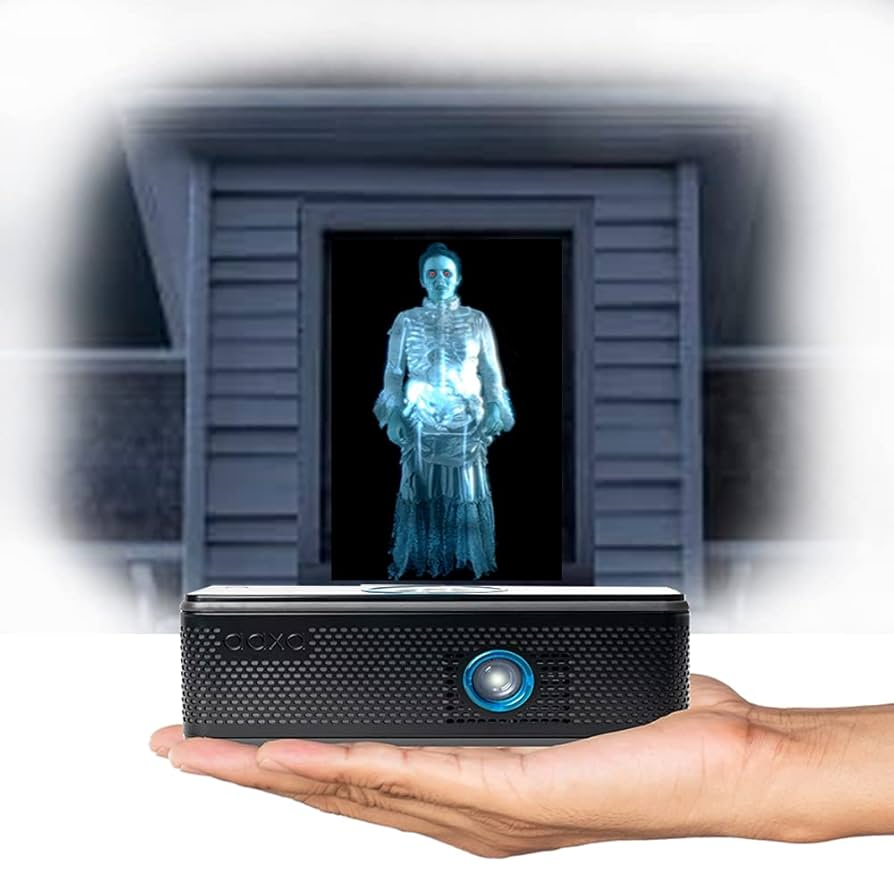 Y si buscas algo todavía más impresionante, instala un proyector inteligente que proyecte figuras, sombras o escenas de terror en tu fachada o ventanas. Solo necesitas una sábana blanca o una cortina como pantalla. Si además colocas la máquina de niebla cerca, lograrás que las proyecciones parezcan cobrar vida en medio del humo.